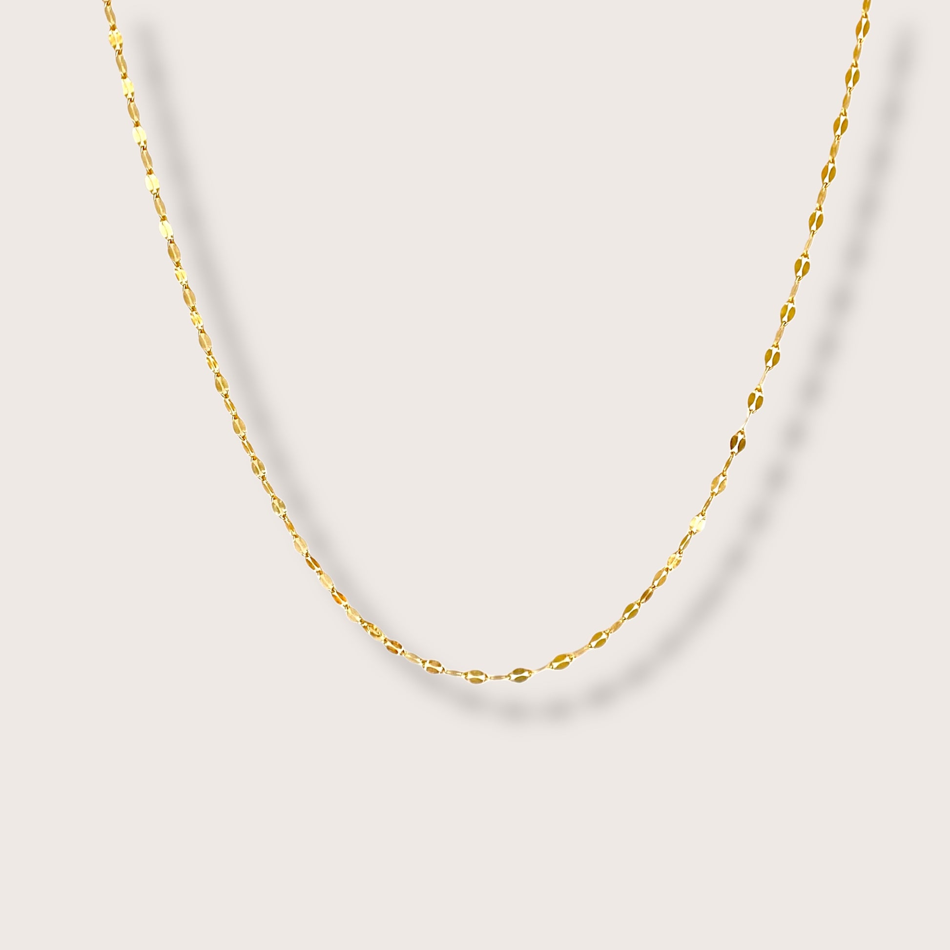 Timeless elegance meets modern shine! This Gold Mirror Link Valentino Chain is a delicate yet eye-catching piece, perfect for everyday wear or layering. Crafted with a high-polish mirror link design, this necklace reflects light beautifully, adding a subtle glow to your neckline.