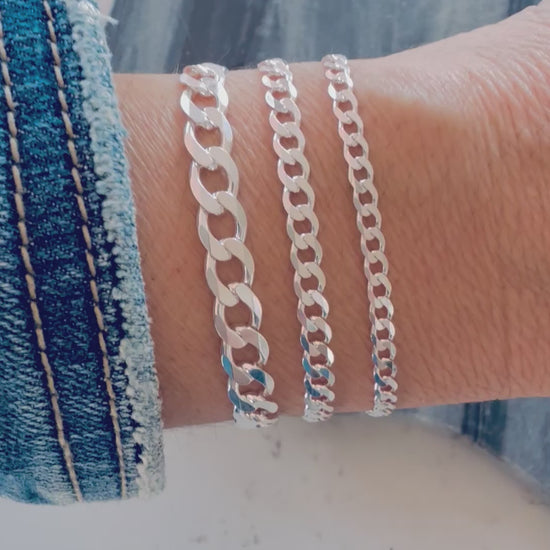 A perfect touch of timeless elegance with this Italian-made sterling silver 6mm diamond cut curb chain bracelet. The design features classic curb links, crafted from high-quality, polished 925 sterling silver. The secure lobster clasp ensures a comfortable and worry-free wear. This hypoallergenic bracelet is perfect for everyday wear or layering.