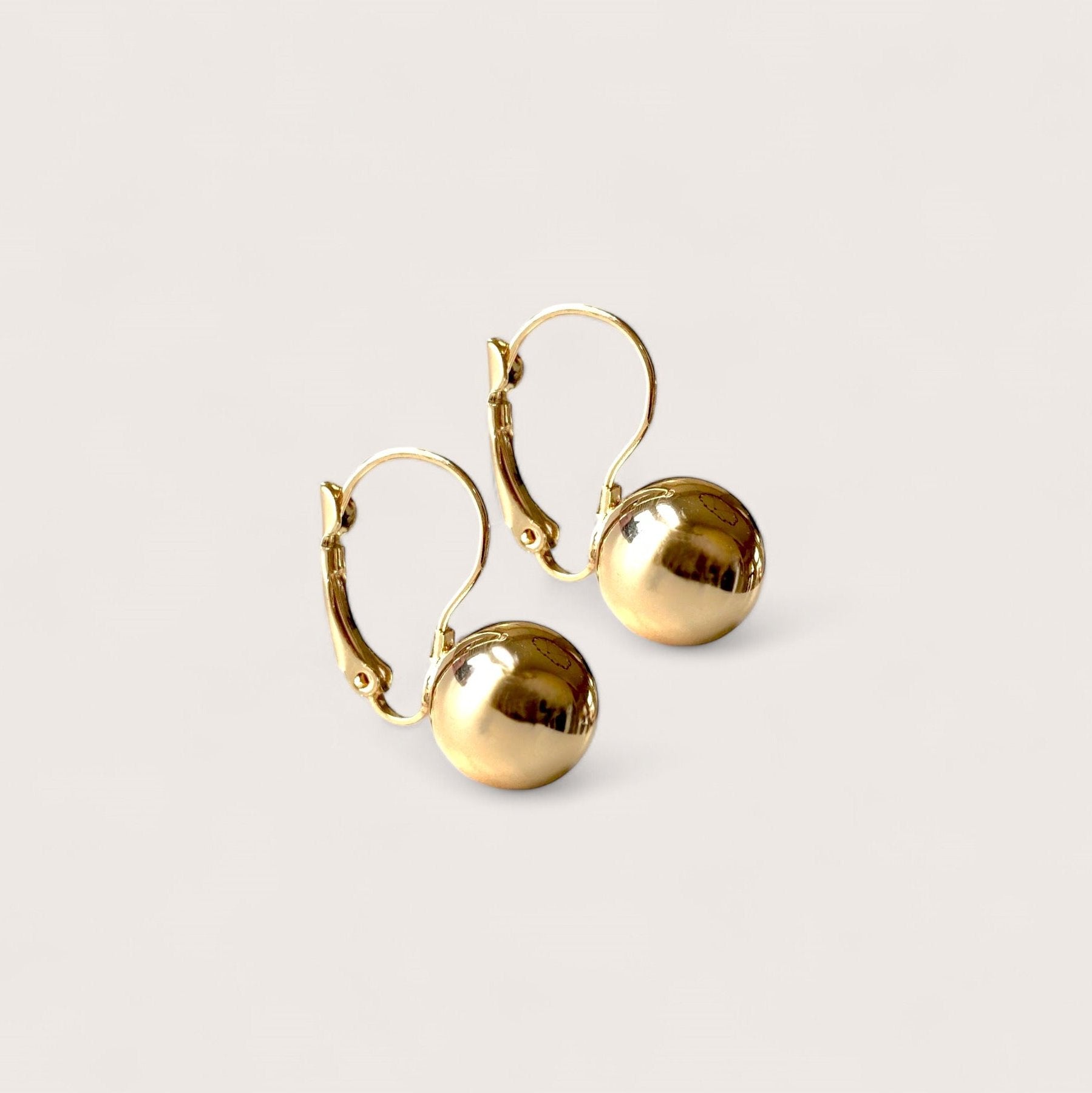 Add a touch of elegance to any outfit with these Gold Dangle Ball Earrings. Featuring a timeless design, a 12mm gold ball, and a lever-back drop closure, they're perfect for everyday wear or special occasions. Classic, stylish, and versatile
