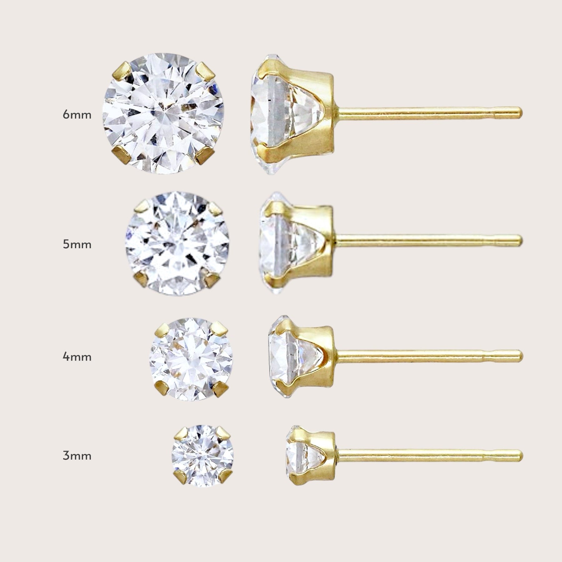 Add some sparkle to your daily routine with our Gold Cubic Zirconia Earrings. Featuring 14K golf filled and high brilliance CZ stones set in a 4-prong setting. These earrings come in 4 sizes for all your ear-stacking desires. Make a statement or keep it simple, these beauties are a must-have for any jewelry collection.