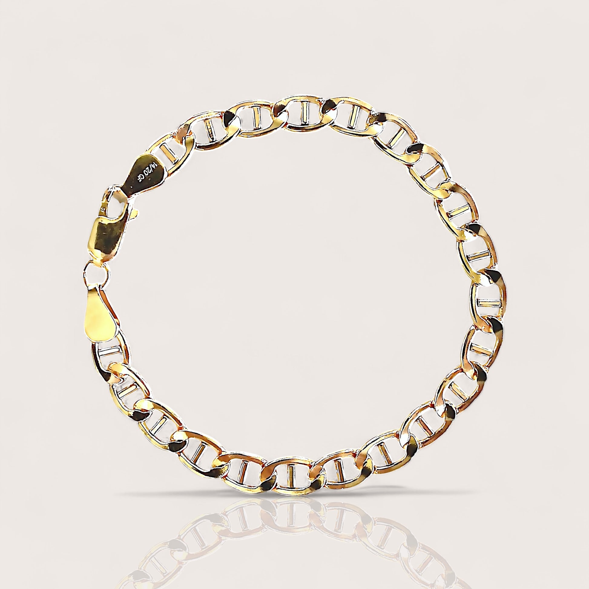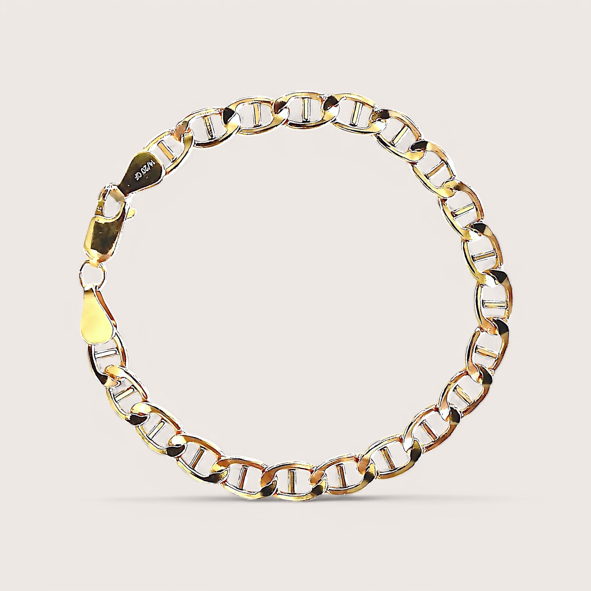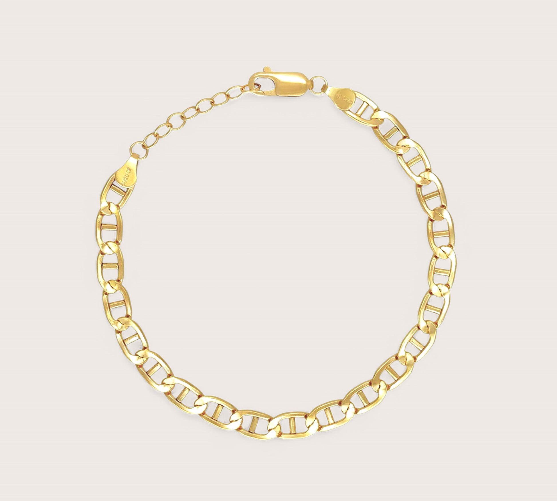 Indulge in luxury with our Gold Mariner Chain Bracelet. The epitome of timeless trends, designed for both beauty and functionality. This bracelet features a non-tarnishing material that wears like real gold and is water safe for worry-free wearing. Elevate your style with this exquisite piece that will keep its luster.