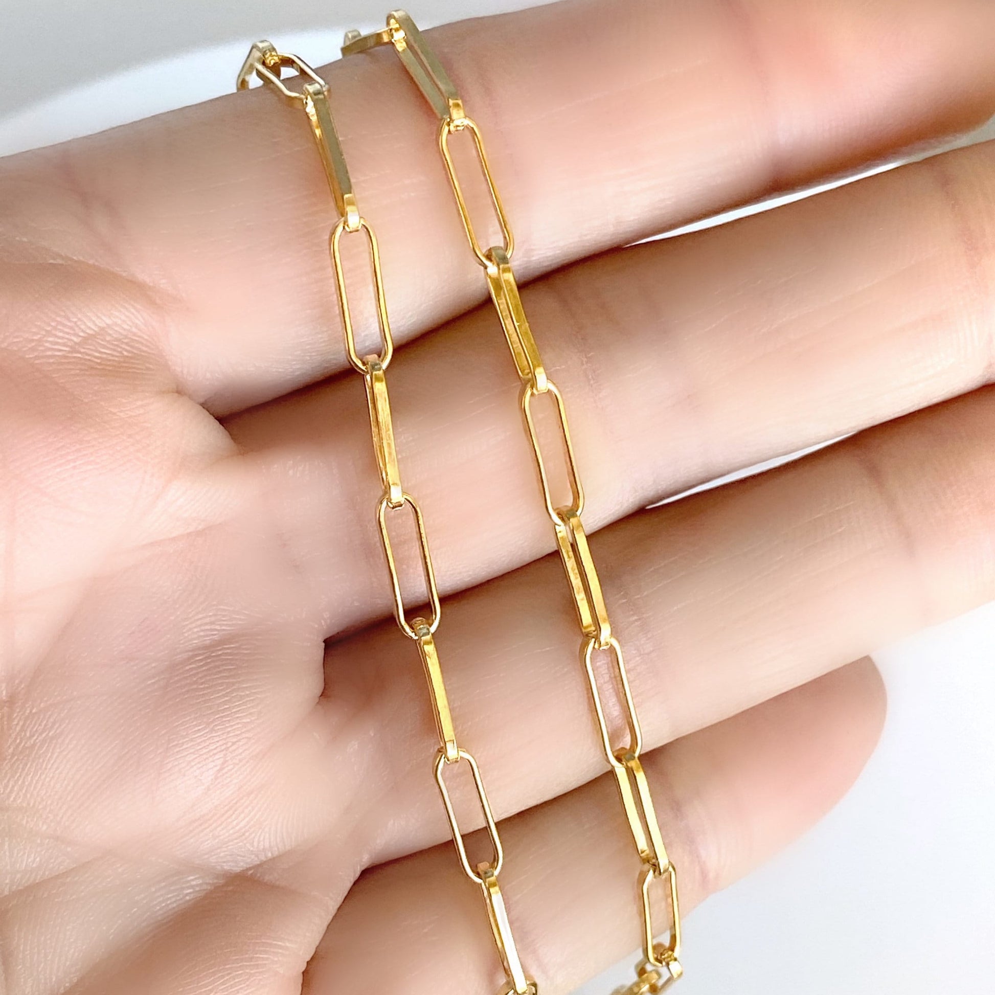 This exquisite gold paperclip bracelet effortlessly elevates any ensemble, exuding a sophisticated and timeless elegance. Crafted from premium waterproof and tarnish-resistant 14K Yellow Gold Filled materials, this bracelet boasts a flat link chain, ensuring durability and longevity. Designed for everyday wear and practicality, it complements any lifestyle with its timeless charm.