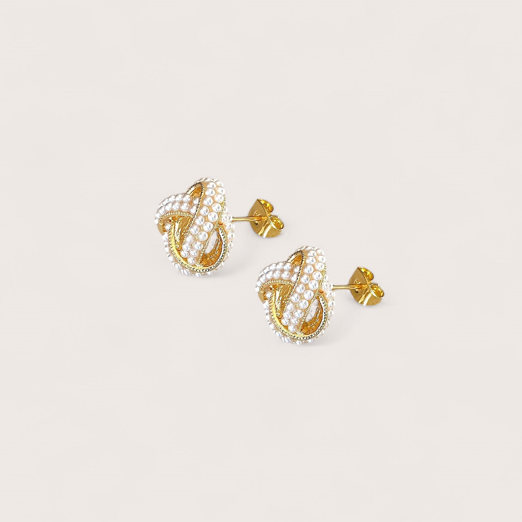 Experience the elegance and symbolism of love with our Pearl Love Knot Earrings. Adorned with ivory pearls, these delicate gold earrings make the perfect accessory for any occasion. With a touch of sophistication, they are sure to make a thoughtful and beautiful gift for yourself or a loved one, symbolizing unbreakable love and unity.